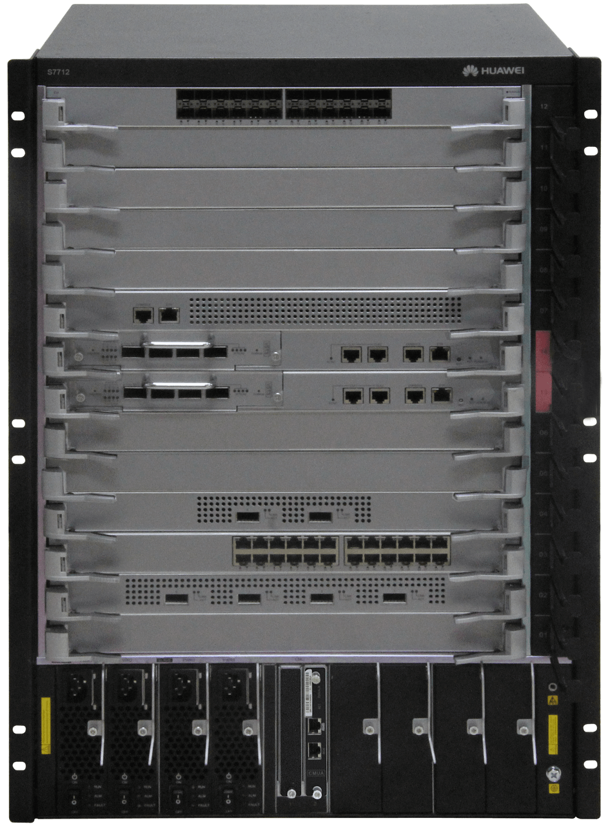 Przełączniki serii S7700 to wysokiej klasy przełączniki przeznaczone do sieci Enterprise nowej generacji. Seria S7700 wykorzystuje inteligentną technologię wielowarstwowego przełączania firmy Huawei, zapewniając inteligentne metody optymalizacji usług, takie jak MPLS VPN, analiza ruchu, QoS, kontrolowana transmisja grupowa, load-balancing i security, a także wysokowydajne usługi przełączania L2/L3 . Przełączniki S7700 mogą działać jako przełączniki agregujące lub rdzeniowe w sieci kampusowej lub w centrum danych, zapewniając dostęp bezprzewodowy, usługi głosowe, wideo i danych, pomagając przedsiębiorstwom w budowaniu zintegrowanej sieci typu end-to-end. S7700 jest dostępny w następujących modelach: